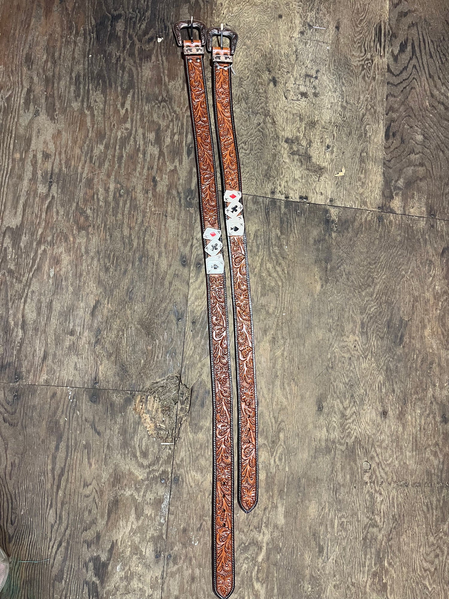 Tooled leather belt total lengths 38.5” and 44.5”